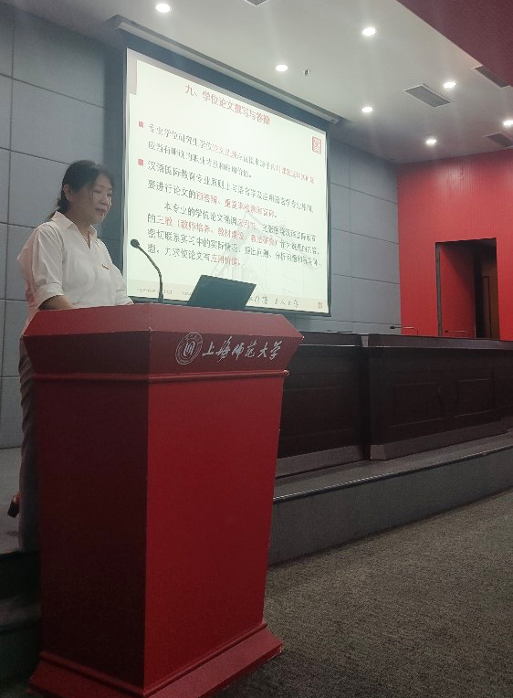 接下来由篮球比分网 的两位研究生专业负责人李文浩老师和吴颖老师分别介绍了学硕和专硕研究生培养中的有关问题,两位老师从培养目标、课程设置、考核方式、论文答辩等方面进行了详尽介绍。最后,副院长李文浩老师介绍了研究生学术规范中的有关问题,并提醒在座所有研究生要维护学术道德、规范学术行为、严明学术纪律。