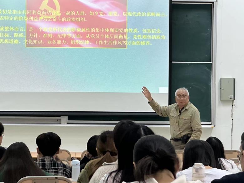 上海师范大学关工委讲师团成员、浦东新区新四军历史研究会副会长兼特约研究员盛昌旦老师讲授了第三节党课“生逢其时 不负韶华”。盛老师结合自己从二十岁递交入党申请书起的各种经历,从共产党员的党性和党章谈起,强调“党章的学习是全体党员的基本功,学习党章不应只为背诵,而是要审视自己的行为思想是否符合党章要求,锤炼自己的党性”。“历史是最好的老师”,盛老师在系统讲解党史、中国百年奋斗史、改革开放史和社会主义发展史中,指明新时代青年的责任与使命,并以新中国同龄人和党员前辈的身份,对在座各位同学提出要求:立志坚持用党员标准对照自己的思想言行,对党忠诚,严格自律;经得起世俗观念的侵袭和诱惑,经得起困难挫折的考验和磨砺。