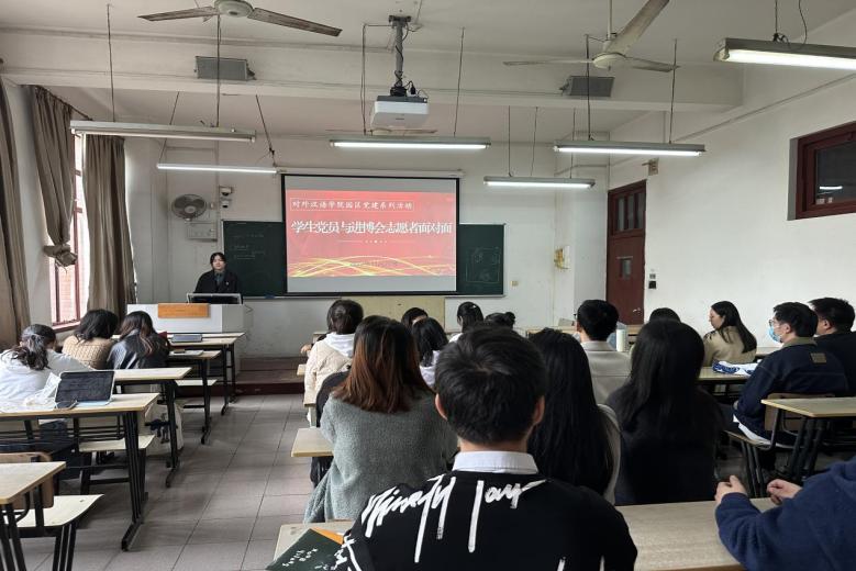 为践行习近平新时代中国特色社会主义思想,11月22日下午,篮球比分网 在徐汇校区一教314开展“学生党员与进博会志愿者面对面”园区党建系列活动暨11月主题党日活动。活动由学风创建创新团队党支部马文娟主持。