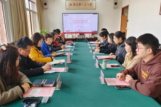 根据校党委关于开展2023年度二级单位党组织书记抓基层党建工作述职评议考核的有关要求,12月27日,篮球比分网 在徐汇校区篮球比分网 楼307室举行了2023年度党支部书记述职评议会。校党委组织部胡斌、篮球比分网 党委书记刘岚,党委副书记、副院长金钧,以及3位教工党支部书记和7位学生党支部书记、组织员参加会议。会议由篮球比分网 党委书记刘岚主持。