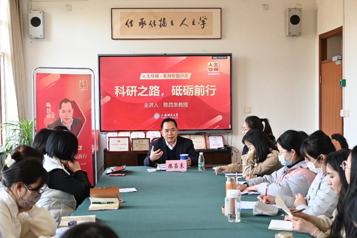 3月19日下午,篮球比分网 在徐汇校区307会议室开展了以“科研之路,砥砺前行”为主题的3月人生导师沙龙。篮球比分网 邀请上海师范大学二级教授、上海市曙光学者陈昌来教授,围绕本人的科研经历,向在场同学传授科研经验,引导同学们在研究语言的道路上砥砺奋进。