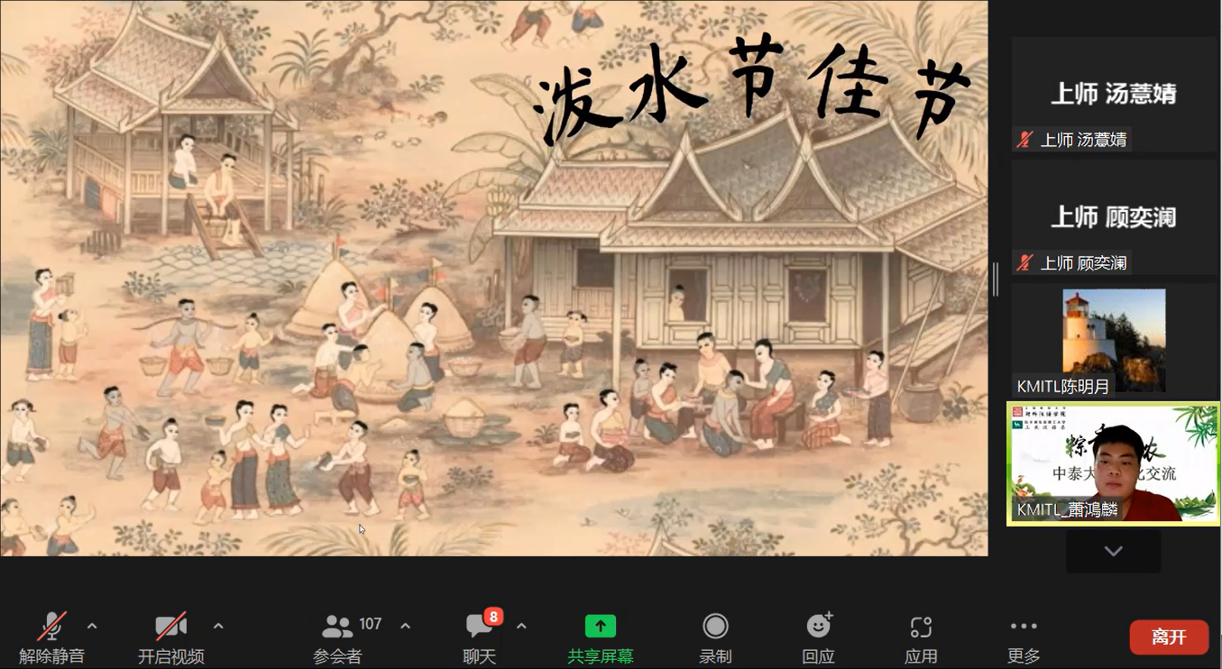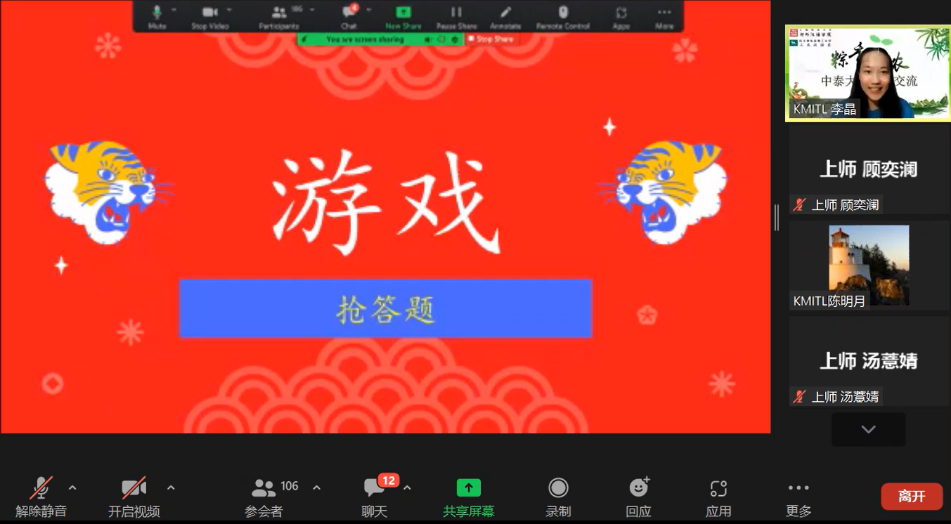 为弘扬中华优秀传统文化,提高对外交际能力,促进中泰大学生跨文化交流,上海师范大学篮球比分网 于2022年6月1日晚在ZOOM会议平台上成功举办与拉卡邦先皇理工大学工业汉语系的中泰文化交流活动。中泰师生共百余人参加本次活动。