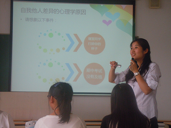 | 5月14日下午1:30,篮球比分网 在奉贤校区三教401举办了一场心理健康讲座,主讲人为生环篮球比分网 的心理辅导员张葳老师,参与此次讲座的有篮球比分网 大一大二的寝室长,主要讲授的内容是大学生寝室关系处理及危机干预。 讲座的开始,老师先进行了一个小活动,她让同学们先在一张纸上写下三个形容自己的词,随后与旁边人互换,让旁边人写下三个词来形容自己,再与自己所写下的进行比对。接着老师又向同学们介绍了几种不经意的小动作、小行为所折射出的心理活动,让同学们对于图片上人的笑容进行真假判断,并且列举了一些情形向同学们询问对此的看法及做法。之后又让同学们分组讨论分析了四种心理现象,同学们纷纷提出了自己见解看法,现场气氛十分的热烈。最后,老师跟同学们谈了危机干预的相关知识,向同学们说明了一些具有自杀倾向的言语及动作,提醒同学们要对周围人的这种举动提高警惕,同学们纷纷表示已牢记在心。 通过此次心理健康讲座,篮球比分网