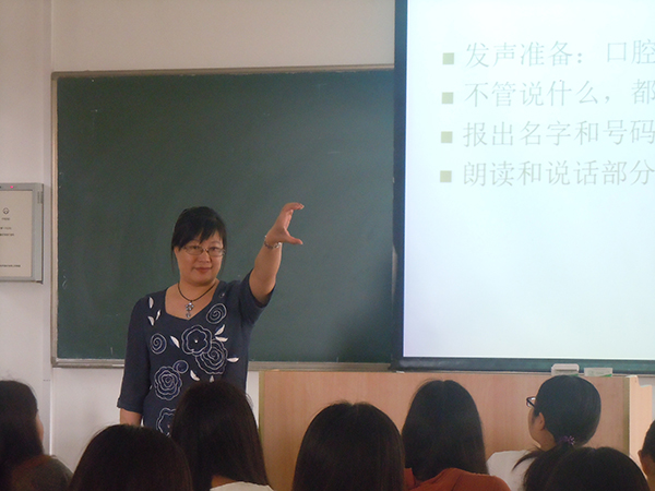 | 6月11日下午1:30在奉贤校区5B204,国家级普通话培训员、篮球比分网 教师张欣为篮球比分网 12级、13级的学生们带来了一场有关普通话测试应试技巧的讲座。 张欣老师用自已多年担任普通话测试员的经验,向同学们讲述了在普通话考试中的要点、注意点并向同学们展示了形式多样的考前准备工作。在发声准备阶段,张欣老师建议同学们在发声之前先做一遍口腔操以增强口腔的灵活性;在读汉字时,张老师要求同学们要注意读得慢并且间隔清楚;在遇到一些需要特别注意的读法,如:“一、不”的变调、上声连续变调等时,张老师提出需要特别加强考前训练。 在讲座过程中,张欣老师不断走下讲台与同学们进行亲切互动,并让同学们齐声朗读PPT上的例词例句,现场气氛热烈。最后同学们用热烈的掌声感谢张欣老师为同学们带来的精彩的辅导讲座。 通过此次讲座,同学们对于即将到来的普通话测试充满了一份信心,大家纷纷表示受益匪浅。