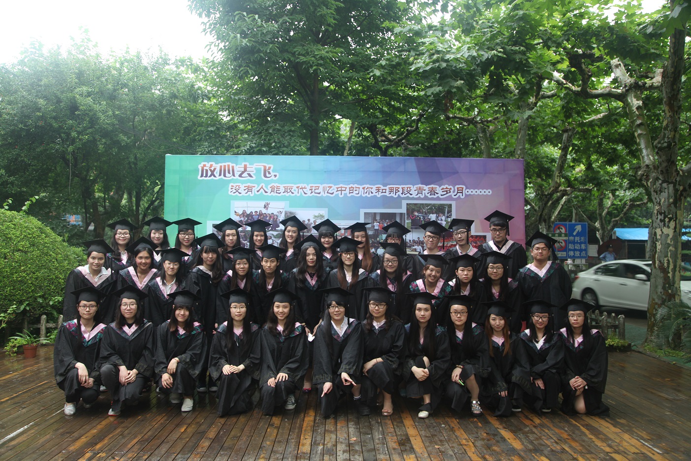 门口放置了毕业合影照片墙,并继续颁发考研奖励和就业奖励鼓励寻找到人生方向的学生们。 (供稿:唐洁)