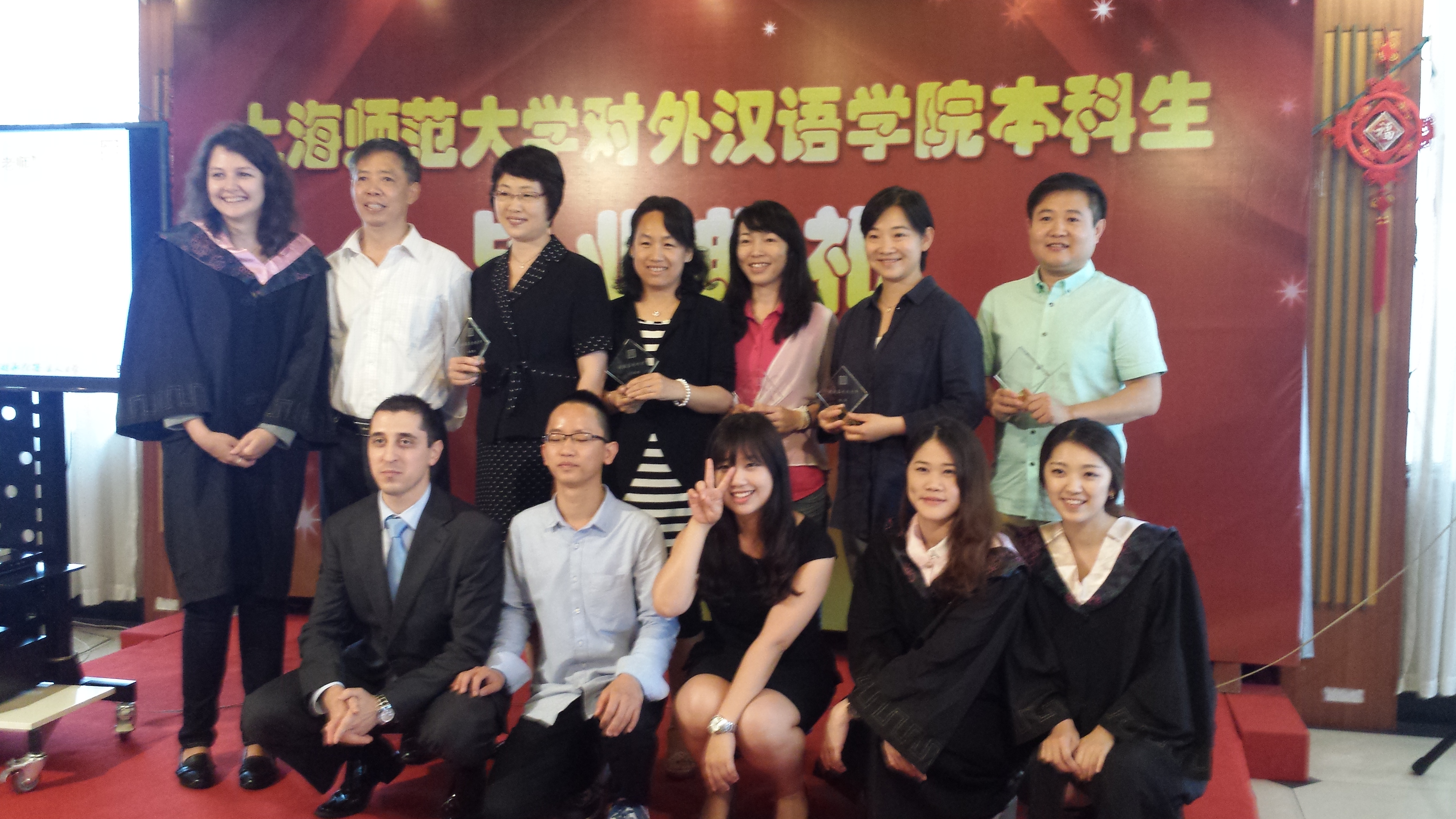 20多名教师代表和来自7个国家的34名留学生本科生以及38名中国本科生参加了活动。典礼由来自中国和意大利的两位本科毕业生共同主持。 在毕业典礼上,首先优秀学生颁奖仪式,中外本科专业负责人分别向5位优秀留学生毕业生和8位中国优秀毕业生颁发证书。随后举行了“最喜爱的教师”颁奖仪式。留学生们共评选出了6名“我最喜爱的教师”,当主持人念出这些老师的名字并邀请老师们上台领奖时,平日里儒雅大方的老师都露出了惊喜的表情。6名留学生代表捧上精心制作的奖牌,一一向自己喜爱的老师鞠躬并颁奖,现场响起了热烈的掌声。