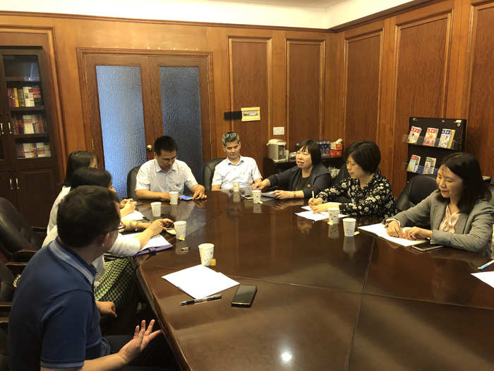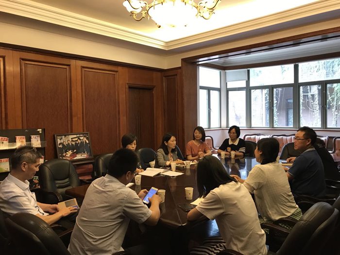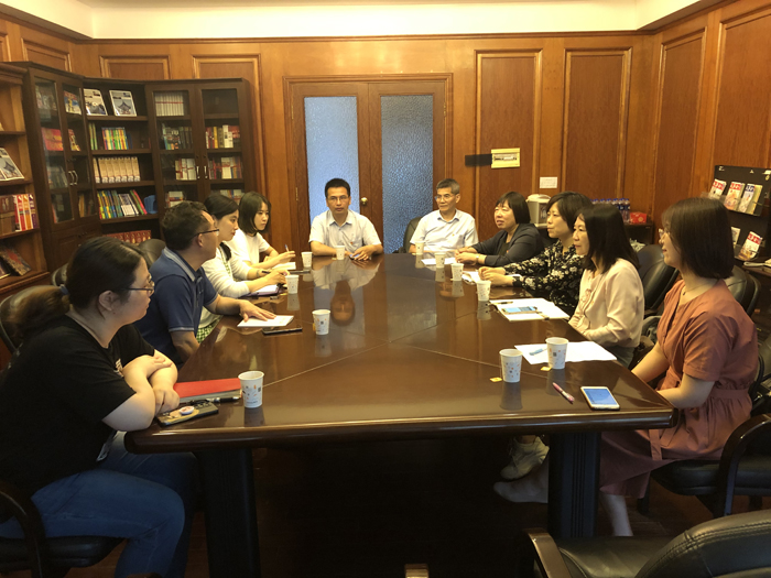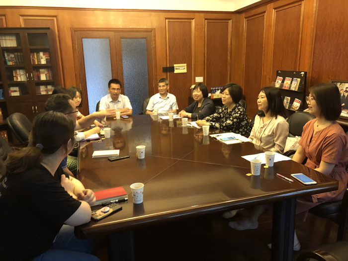 《咬文嚼字》编辑部主编黄安靖同志、责任编辑施隽南同志带领支部成员在会议厅接待了上海师范大学篮球比分网 第二党支部教师。黄主编介绍了刊物的发展概况,表示支部共建一方面可以促进刊物发展,一方面也可以为篮球比分网 开展语言服务提供良好的平台。篮球比分网 党委副书记、院长曹秀玲老师认为两个部门的工作有不少共性,支部共建可以拓宽党员教师与社会服务的接触面,可以使大家更好地发挥专业优势,为党和人民服务。