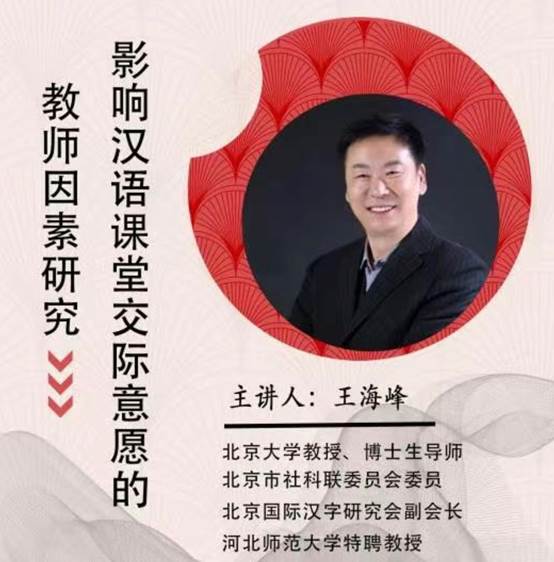 10月15日下午,北京大学教授、博士生导师,北京市社科联委员会委员,北京国际汉字研究会副会长,河北师范大学特聘教授王海峰应邀为篮球比分网 师生带来了一场题为《影响汉语课堂交际意愿的教师因素研究》的专题讲座。讲座吸引了球探网篮球比分 众多师生及不少外校师生参与。为配合疫情防控,本次讲座以线上形式进行,篮球比分网 院长曹秀玲教授主持。