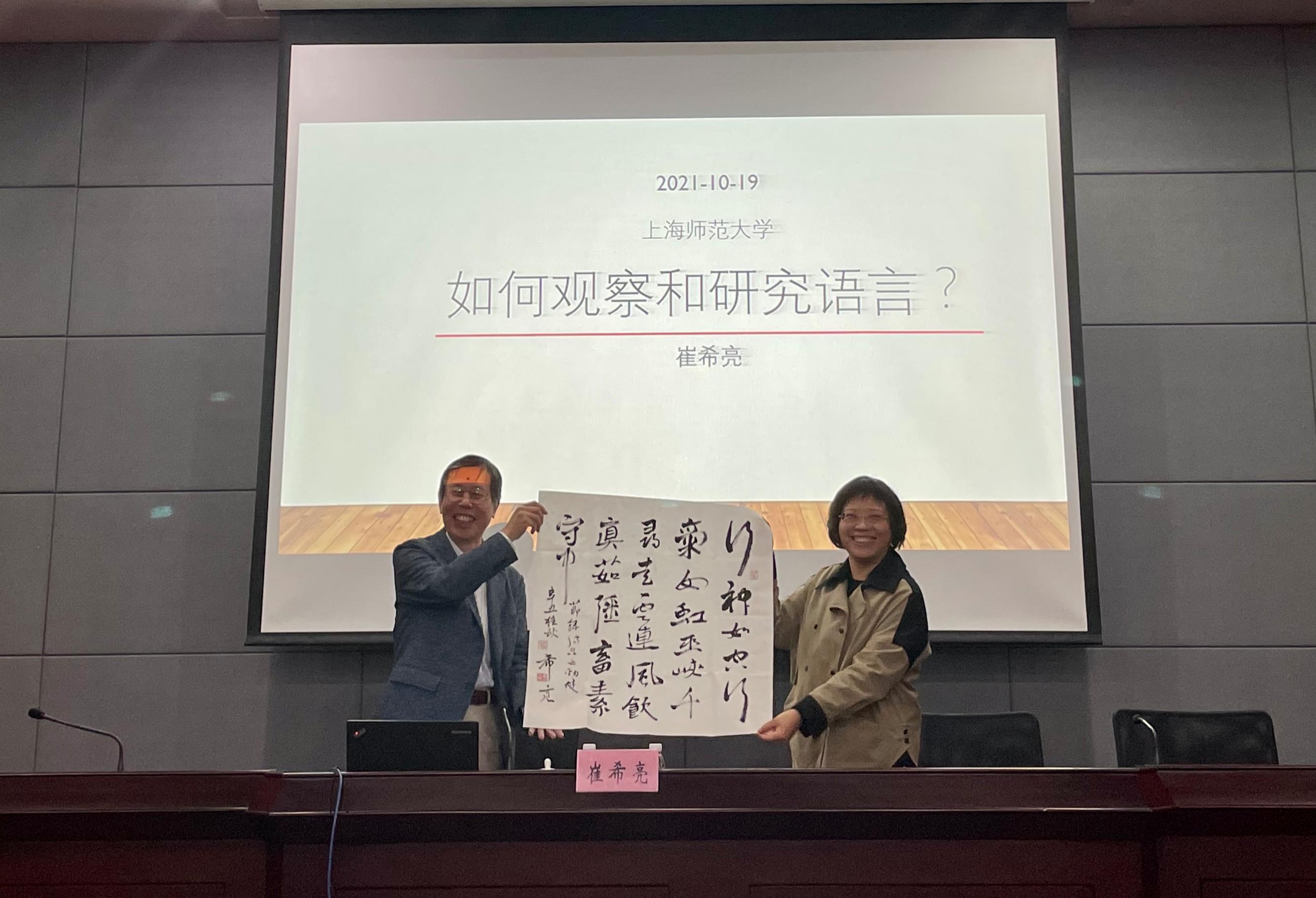 10月19日下午,北京语言大学语言学及应用语言学教授、博士生导师、中国书法国际传播研究院院长、世界汉语教学学会副院长、全国教育书画协会副会长崔希亮应邀为上海师范大学篮球比分网 师生带来了一场题为《如何观察和研究语言》的学术讲座。讲座采用线上线下相结合的方式进行,吸引了球探网篮球比分 和校外众多师生参与。本次讲座由篮球比分网 院长曹秀玲主持。