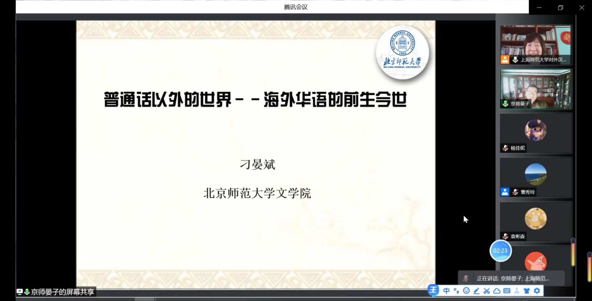 2022年4月27日下午,北京师范大学文篮球比分网 教授、北京师范大学全球华语比较研究中心主任、中国语文现代化学会常务理事、中国语文现代化学会两岸语言文字研究会会长刁晏斌教授应邀为篮球比分网 师生带来了一场题为《普通话以外的世界——海外华语的前生今世》的专题讲座。本次讲座由曹秀玲教授主持,以线上方式进行,吸引了校内外众多师生参与。