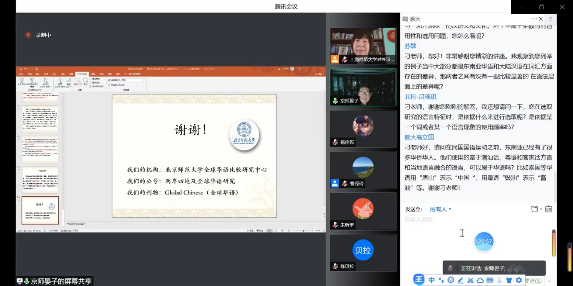 最后,刁晏斌教授以马来西亚学者邱克威的话作为总结,指出“马来西亚华语的研究是一块绝世璞玉,只待有心人将其耀眼的玉质展现出来。”互动交流环节,师生踊跃提问,刁教授一一耐心解答,大家受益匪浅。