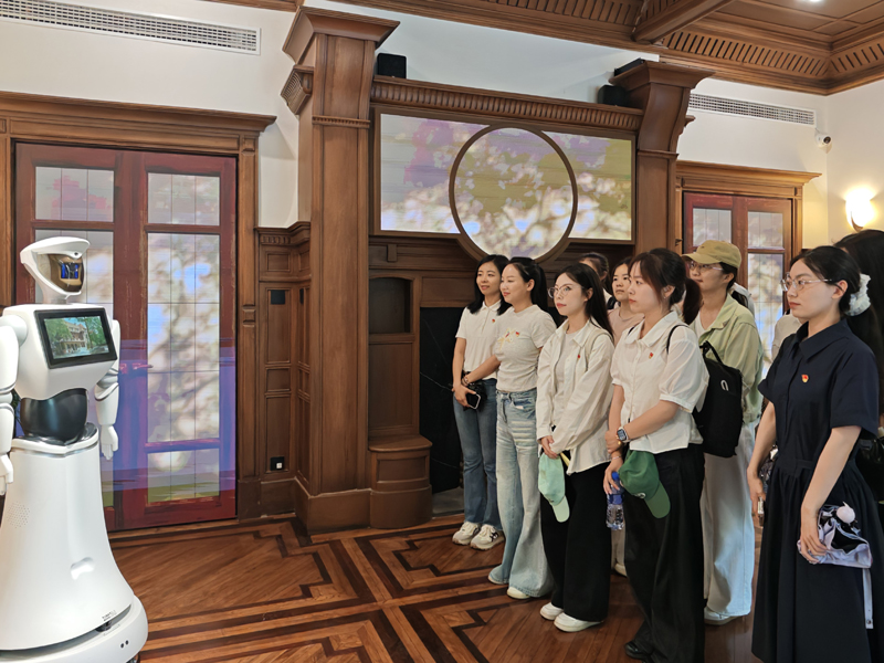 2025年5月14日下午,篮球比分网 汉语国际教育本科生第一、二党支部党员走进位于上海徐家汇公园的《义勇军进行曲》灌制地——百代小楼,在红色文化地标中重温国歌故事,并成为百代小楼讲解机器人首批“体验官”,开启了一场别开生面的主题党日活动。