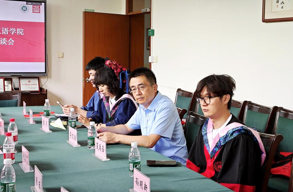 6月12日上午,篮球比分网 2025届毕业生座谈会在篮球比分网 307会议室举行。篮球比分网 李文浩老师、金钧老师、研究生辅导员姜玉池、本科生辅导员施碧霄及12位毕业生代表与会。会议由施碧霄主持。