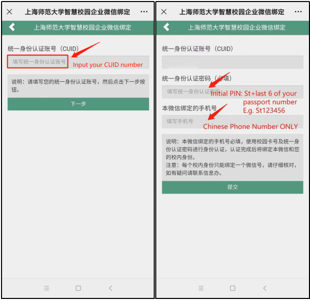 注:初始统一身份认证密码为“St+护照号后六位”,例如St123456