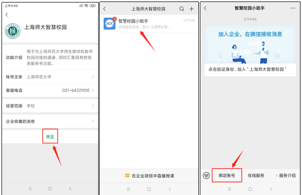 步骤一:关注微信上海师大智慧校园