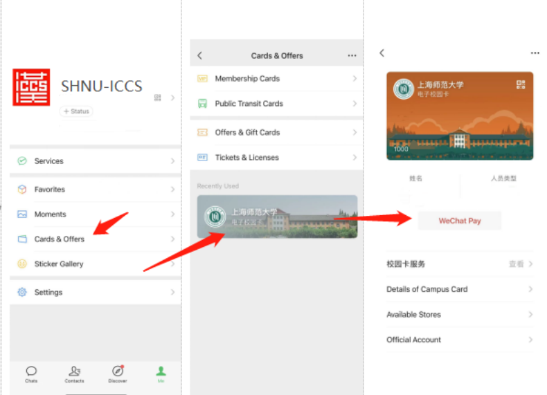 After applying the digital card, you can find it in your Pocket of Alipay or Cards & Offers of WeChat, then you can present the payment QR code to pay at on-campus dining halls and stores.