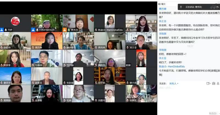 在交流讨论环节,吴勇毅教授与线上师生积极互动。针对大家的提问,吴教授作了耐心细致的解答。最后广大师生集体合影留念。